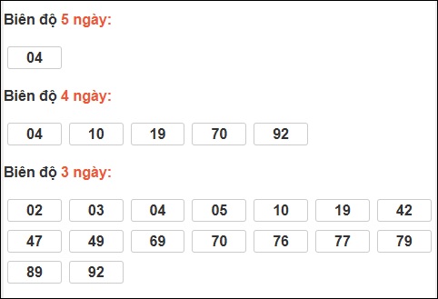 Đuôi 1: 19 ngày, Đuôi 0: 7 ngày, Đuôi 7: 6 ngày, Đuôi 3: 5 ngày, Đuôi 5: 3 ngày
