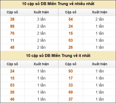 ⚡ 10 cặp số ĐB XSMT về nhiều nhất/ ít nhất tính dến ngày 09/12/2025:
