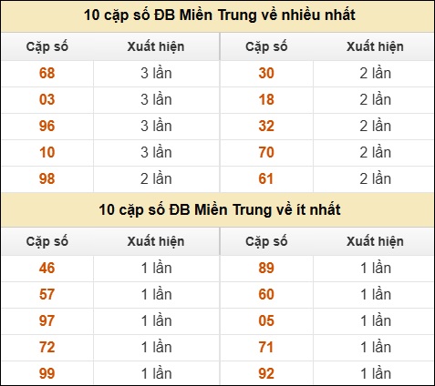 ⚡ 10 cặp số ĐB XSMT về nhiều nhất/ ít nhất tính dến ngày 9/8/2025: