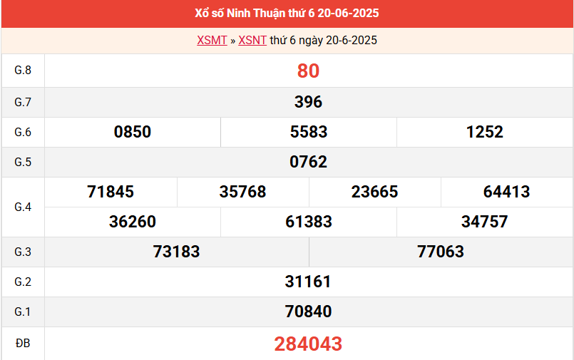 Bảng kết quả Ninh Thuận ngày 20/6/2025 tuần trước