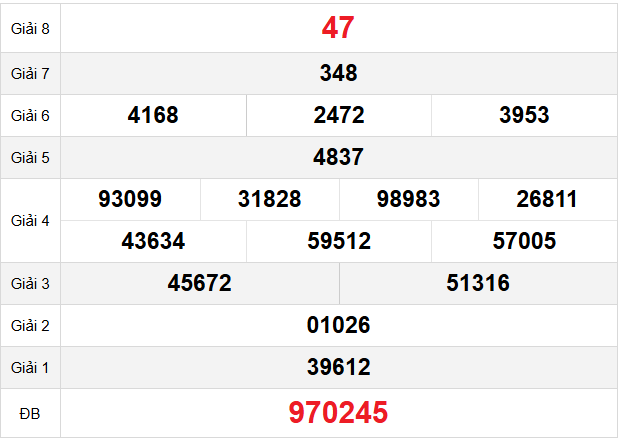 Mời các bạn xem lại bảng kết quả kỳ trước với giải đặc biệt, giải tám, lô tô 2 số để có thể đưa ra nhận định dự đoán QT ngày 17 tháng 7 năm 2025 chuẩn xác nhất.