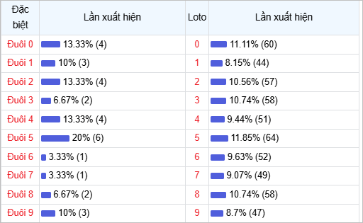 Thống kê số đuôi về nhiều nhất trong 30 ngày