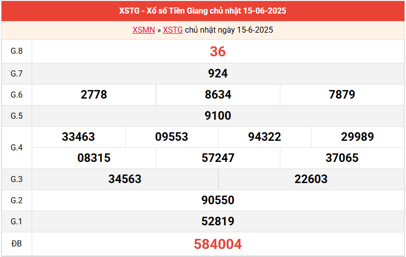 Bảng kết quả Tiền Giang ngày 15/6/2025 tuần trước