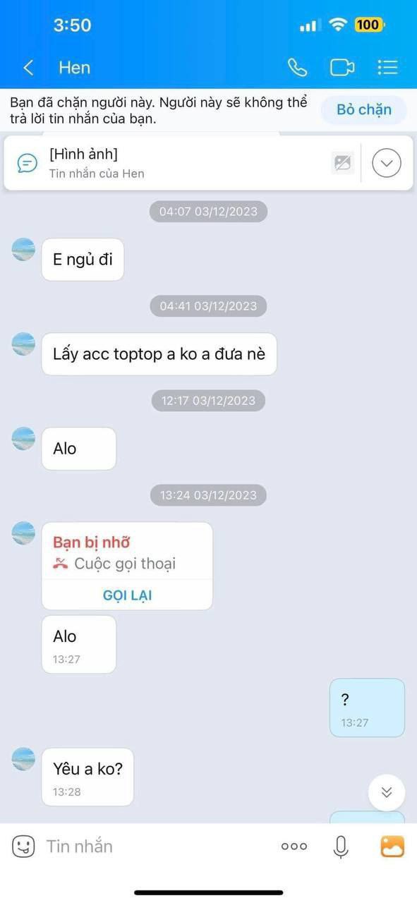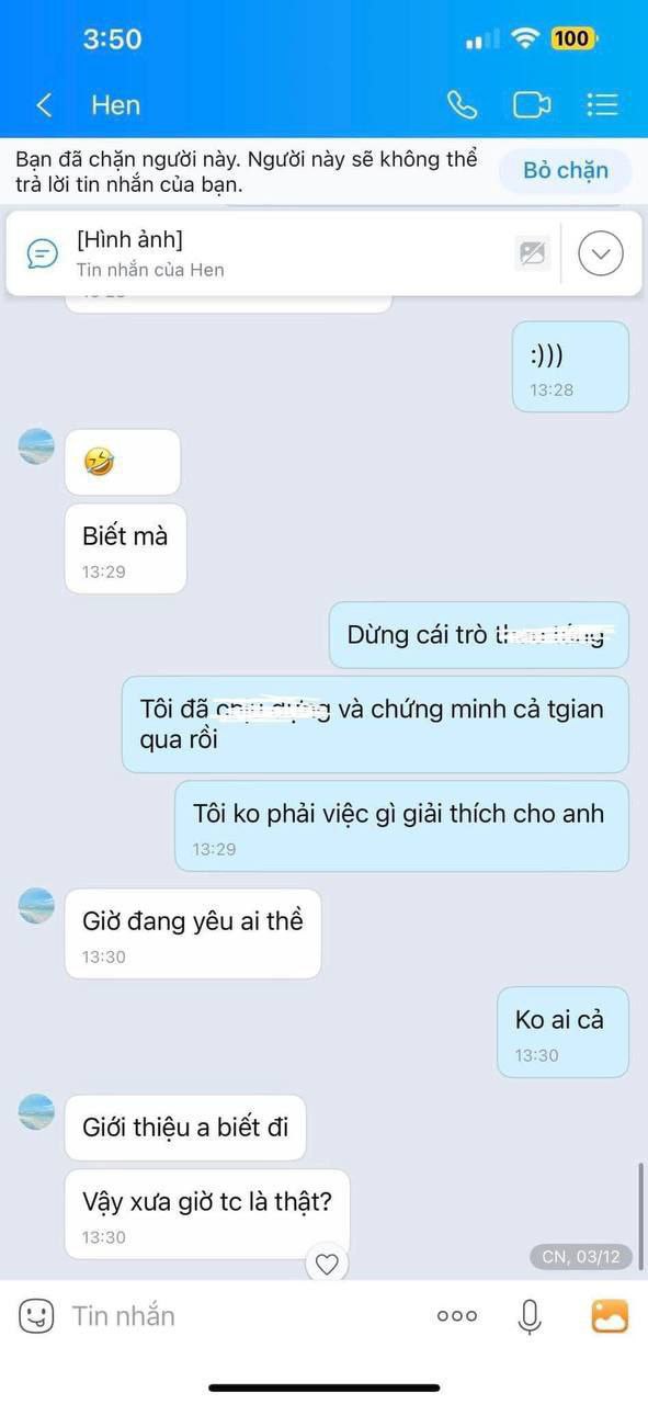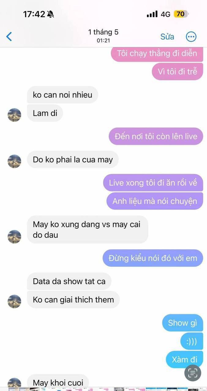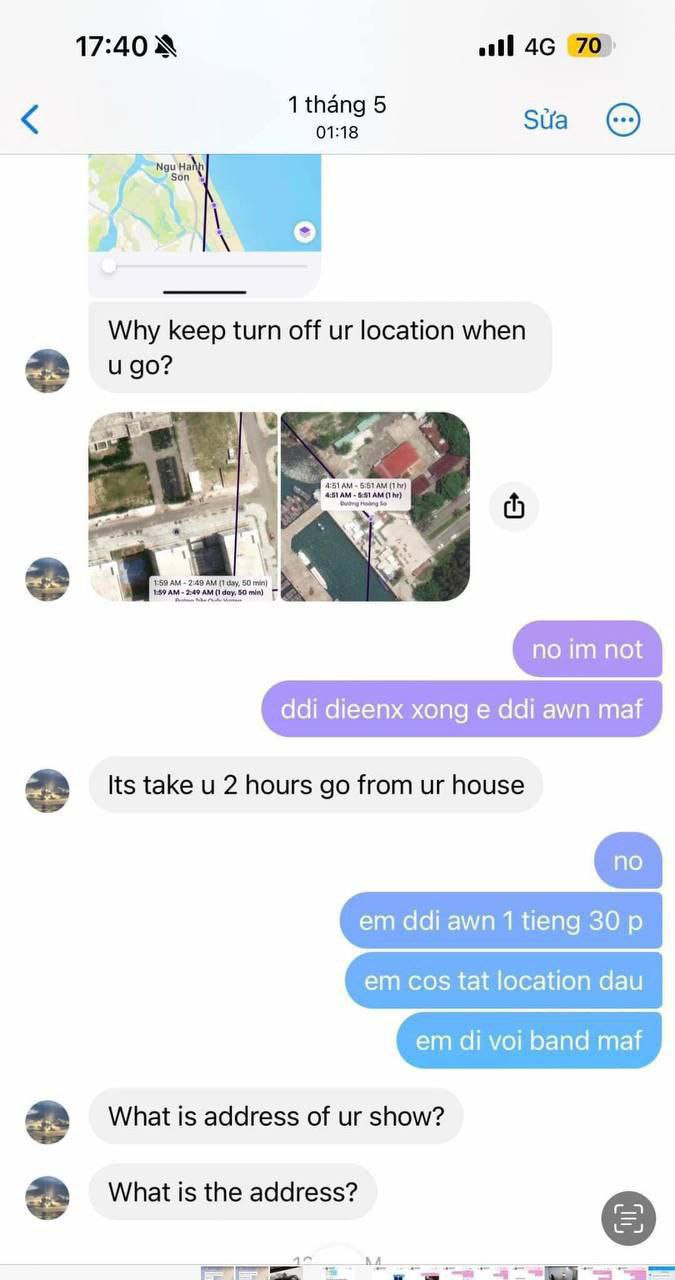 Nhưng mọi thứ vẫn trong tầm kiểm soát của anh N. Khi về Đà Nẵng được một thời gian, tâm lý em dần ổn định và khá hơn lúc ở Sài Gòn. Em đi hát trở lại và có làm thêm tại 1cty khi biết chuyện này anh N đã nhiều lần gây áp lực để em phải bỏ việc chỉ vì ông ghen (hình phía bên dưới ). Khoảng tháng 4/2023 em làm TikTok như một cách để giải toả tâm lý không ngờ được mọi người yêu thương và đón nhận em là một idol TiTok. Tháng 8/2023, em quay trở lại sài gòn để thuận tiện công việc. Anh N lúc đầu tỏ vẻ khó chịu, không đồng ý và tiếp tục theo dõi, giám sát em ngày đêm.