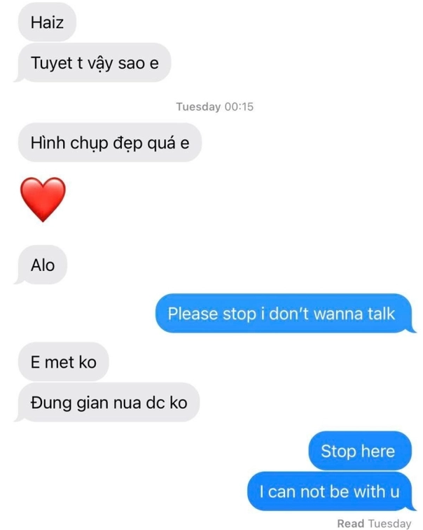 Cô nàng cố dừng mọi chuyện nhưng anh N. vẫn liên lạc