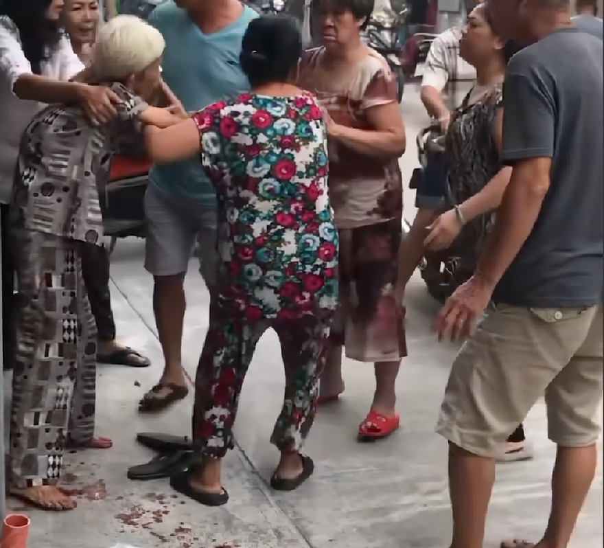 Tiếp đó, đối tượng dùng dao chém loạn xạ vào một số người dân khiến một nam và nữ bị thương, các nạn nhân được người dân hỗ trợ đưa đi cấp cứu trong tình trạng chảy nhiều máu, vết thương hở. Trong đó, nạn nhân nữ là một phụ nữ khoảng 70 tuổi bị thương nặng.