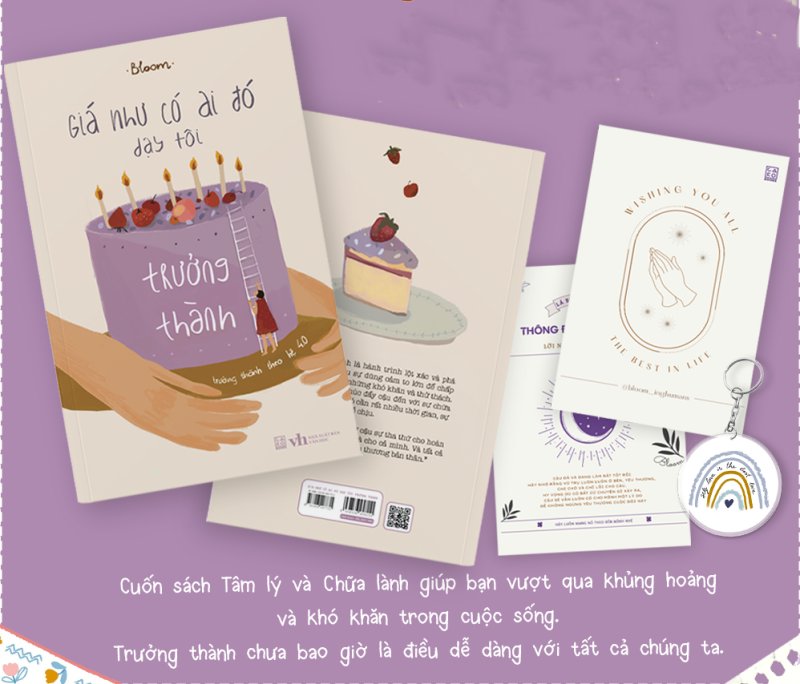 Cuốn sách "Giá Như Có Ai Đó Dạy Tôi Trưởng Thành" do tác giả Bloom sáng tác và xuất bản lần đầu trong năm 2022, không chỉ là một tác phẩm văn hóa mà còn là một nguồn cảm hứng mạnh mẽ. Nội dung của cuốn sách là một lời nhắc nhở sâu sắc về sức mạnh của cộng đồng và khả năng tự giác. Qua từng trang sách, độc giả sẽ khám phá ra rằng họ không đơn độc trong hành trình trưởng thành, và họ có khả năng đối mặt với những thách thức, tìm hiểu cách yêu thương chính bản thân mình và trải qua quá trình tự chữa lành để trở thành phiên bản tốt nhất của bản thân.