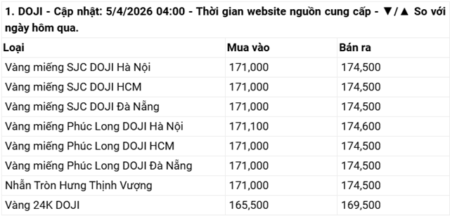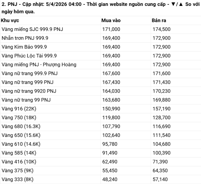 Bảng giá vàng hôm nay 5/4/2026 mới nhất