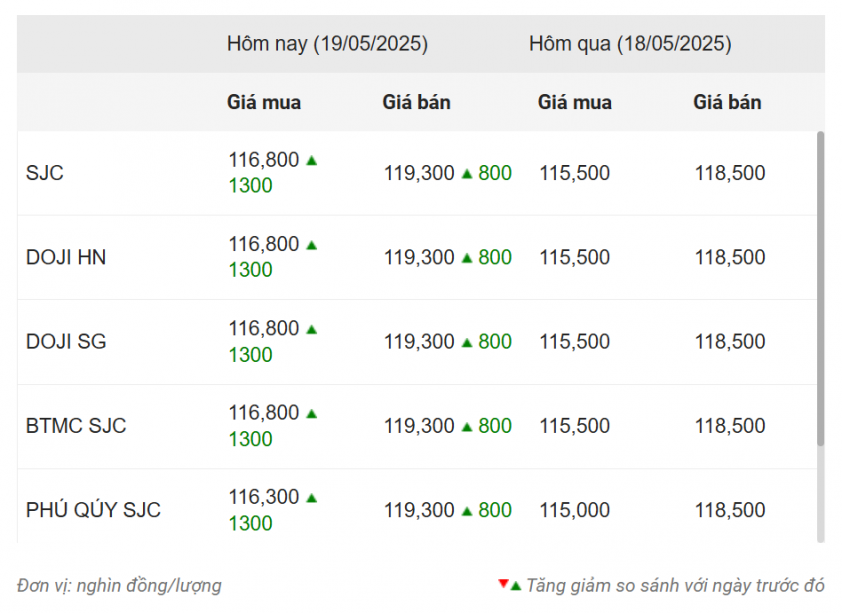 Giá vàng hôm nay ngày 19/5/2025 tính tới 11h30 trưa: giá vàng trong nước và thế giới đồng loạt tăng trở lại.