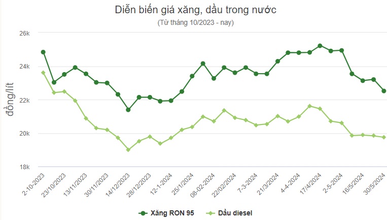 Như vậy, từ đầu năm đến nay, giá xăng có 12 lần tăng, 10 lần giảm. Mặt hàng dầu có 10 lần tăng, 12 lần giảm. Hiện, mỗi lít RON 95-III đắt hơn khoảng 600 đồng, dầu diesel là 380 đồng so với hồi tháng 1.