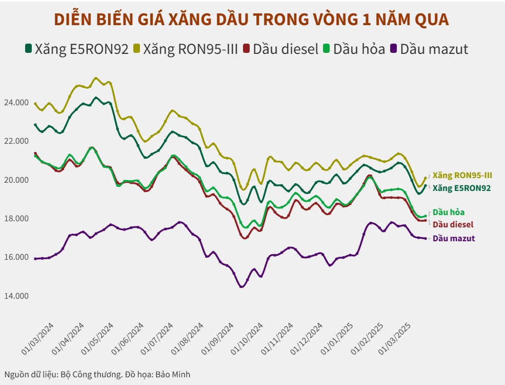 Tính từ đầu năm 2025 đến nay, giá xăng trong nước đã trải qua 12 phiên điều chỉnh, trong đó 5 phiên giảm, 5 phiên tăng và 2 phiên trái chiều.
