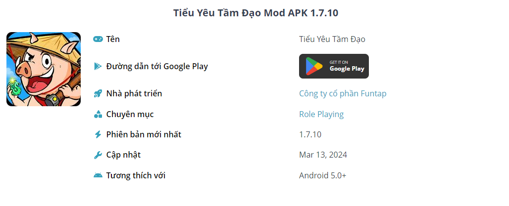 Với cách tải Tiểu yêu tầm đạo mod mà chúng tôi chia sẻ ở dưới phần bài viết này. Thì bạn cũng không phải làm quá là nhiều thao tác mà bạn vẫn có thể tải được phiên bản mod này về để trải nghiệm những tính năng hỗ trợ của nó. Vậy để biết được cách tải phiên bản mod này vậy xin mời bạn chú ý phần bài viết bên dưới đây để hiểu rõ hơn cách tải nhé.
