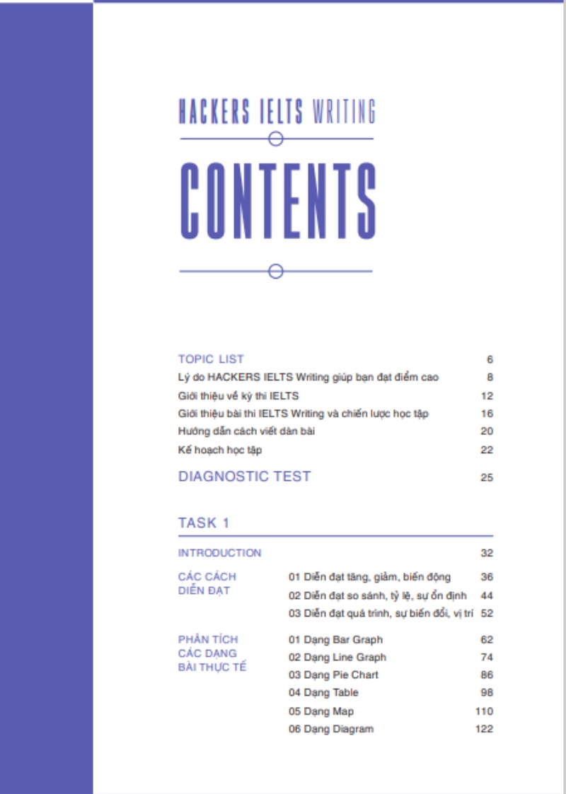 Bộ sách Hacker IELTS Writing phù hợp với lộ trình học kéo dài từ 4 - 6 tuần với các nội dung chính sau: