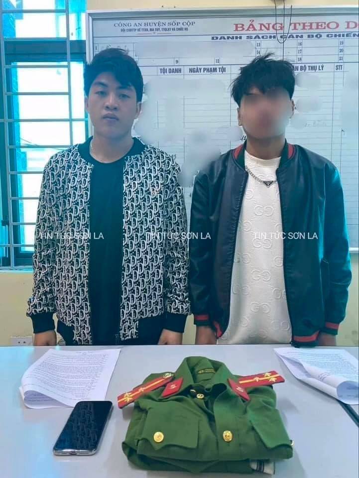 Tại cơ quan công an, 2 thanh niên khai nhận đang làm lao động tự do tại huyện Sốp Cộp, mặc dù không công tác trong lực lượng công an nhưng đã tự ý lấy bộ trang phục công an mặc để livestream với mục đích câu like, tương tác trên trang Facebook cá nhân của mình.