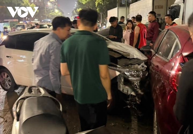 VOV cho biết, theo nhân chứng, tài xế ô tô gây va chạm xuống xe làm việc với cơ quan chức năng có biểu hiện say xỉn. Hiện lực lượng chức năng đang khám nghiệm và điều tra nguyên nhân vụ tai nạn.