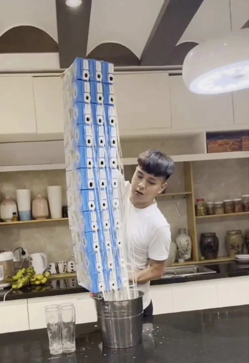 Cụ thể Hồ Quang Hiếu đã thực hiện clip đổ sữa ra xô với hơn 33kg sữa được dán dính vào nhau thành khối. Có khá nhiều netinzen chỉ trích vì anh chàng đã gây lãng phí đồ ăn.