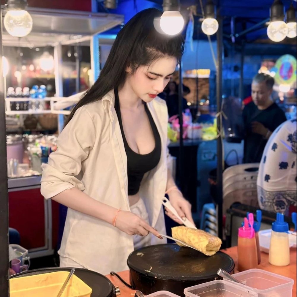 Thực tế, cô nàng đã xuất hiện trong những clip viral từ cuối năm ngoái. Video được kênh YouTube Street Food Celebrity đăng tải vào tháng 10/2024 đến nay đã thu hút hơn 2,7 triệu lượt xem. Video ghi lại cảnh nấu nướng của "hoa khôi chợ đêm" trên kênh Born to Eat cũng đạt 1,4 triệu lượt xem sau khoảng một năm lên sóng. Danh tính cô gái trẻ cũng khiến nhiều người xem tò mò tìm kiếm.