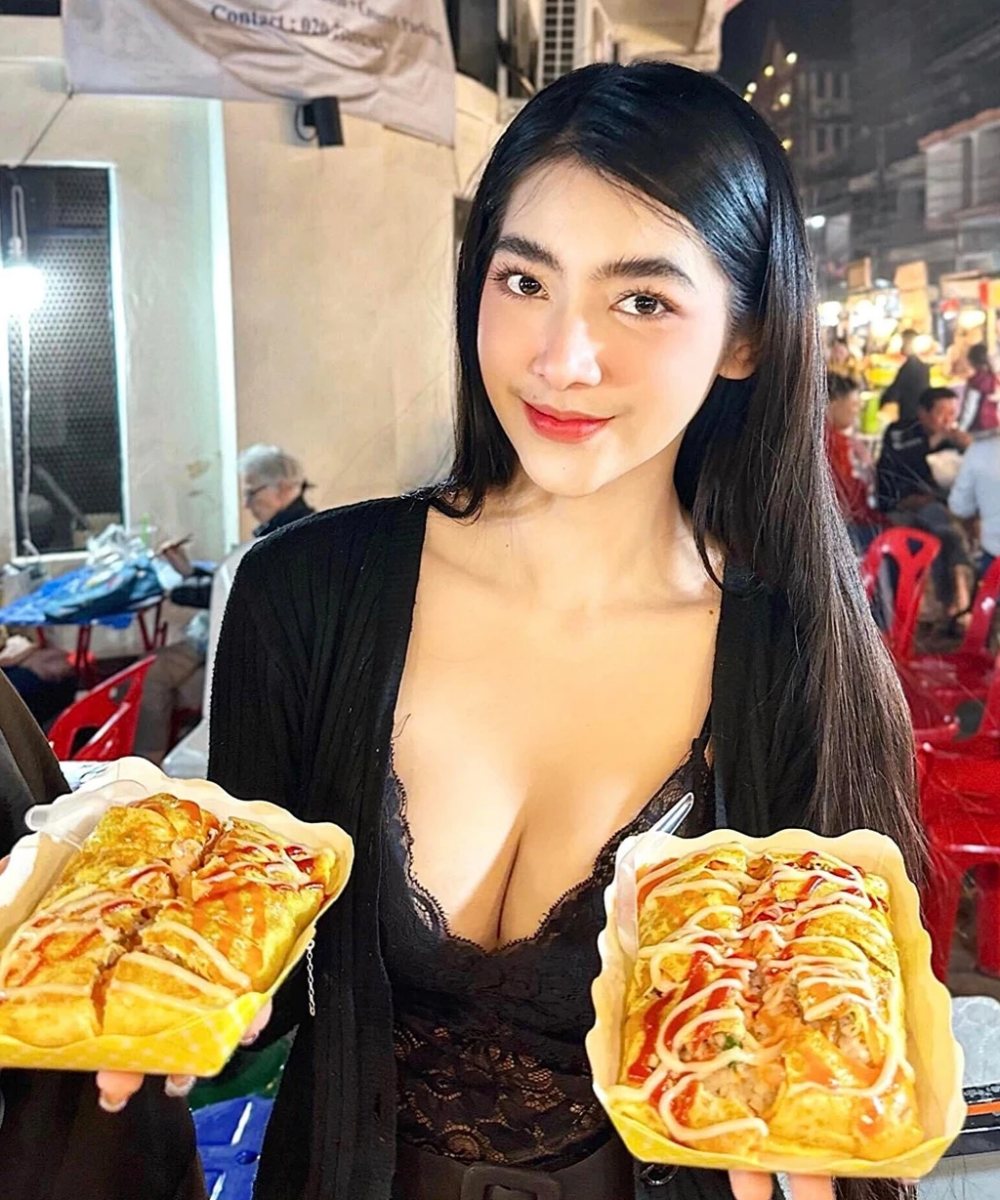 Cô nàng chủ quầy trứng chiên ở Chợ đêm ẩm thực tại Vientiane (Lào) thu hút hàng triệu lượt xem với sắc vóc nổi bật, khuôn mặt xinh như búp bê và được ví là "hoa khôi".