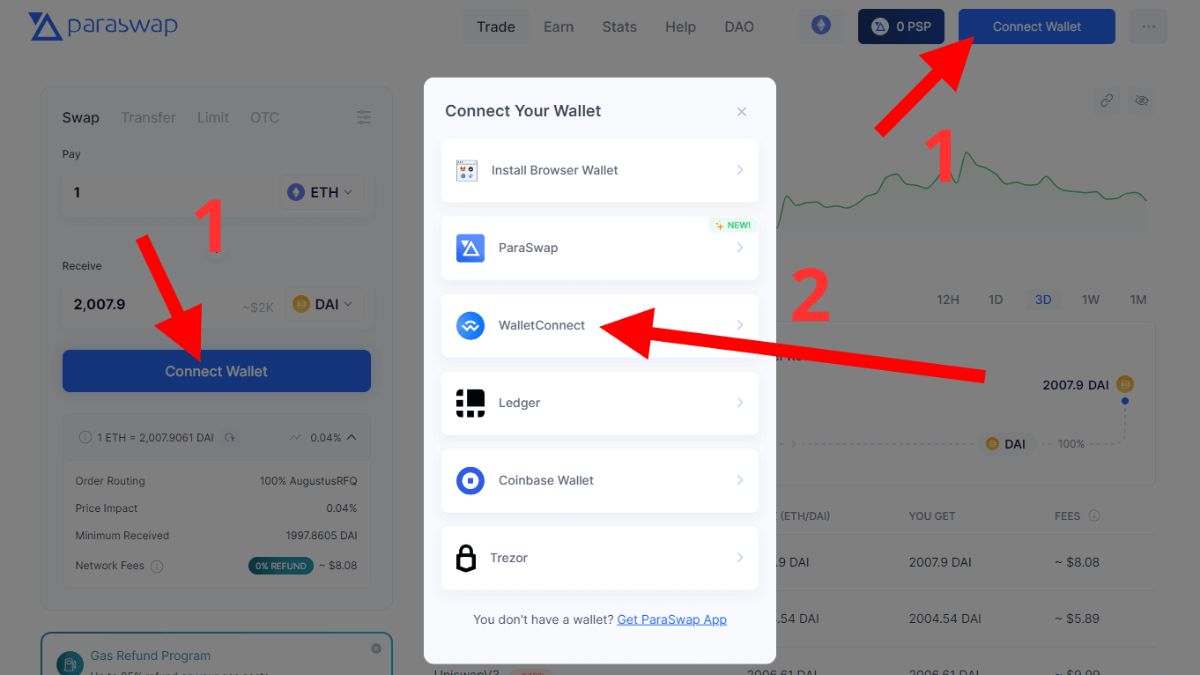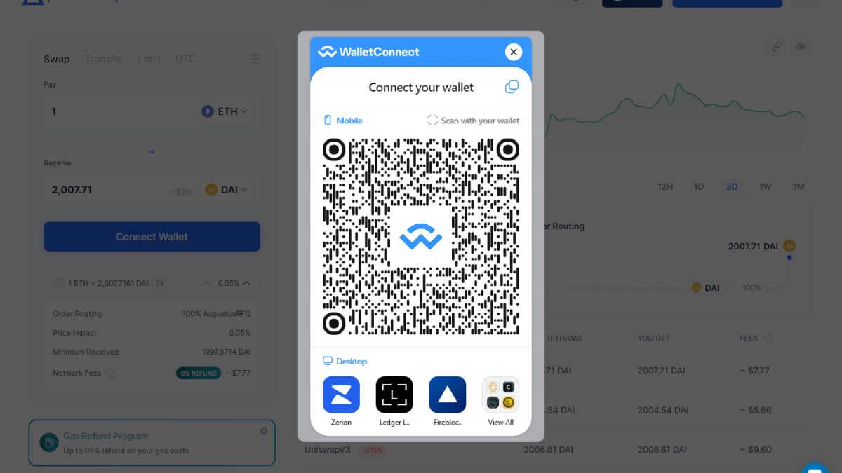 Mở DApp và bắt đầu liên kết với WalletConnect