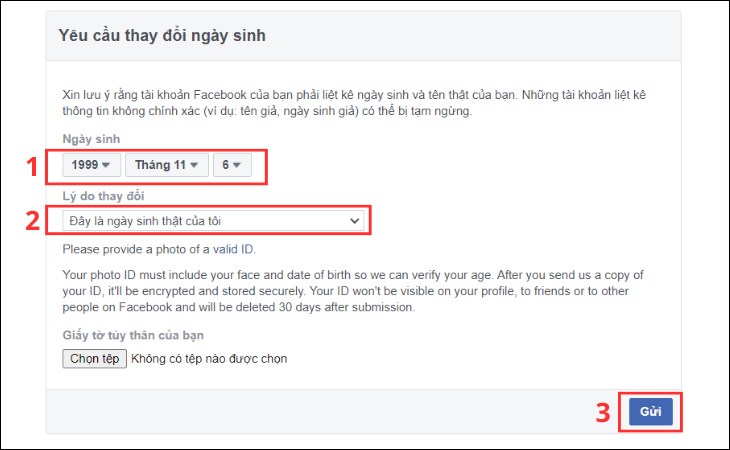 ✅Bước 5: Hãy điều chỉnh ngày sinh theo nhu cầu và nhấn Lưu. Cuối cùng, bạn cần bấm Xác nhận để Facebook cập nhật dữ liệu.