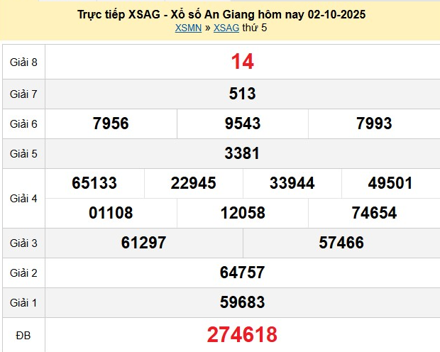 XSAG 30/10, Kết quả xổ số hôm nay ngày 30/10, XSAG Thứ Năm, Trực tiếp KQXSAG ngày 30/10, Kết quả xổ số An Giang hôm nay ngày 23/10/2025, Kết quả xổ số An Giang Thứ Năm ngày 30/10/2025.
