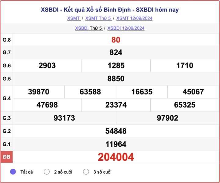 XSBDI- XSBDI - Xổ số Bình Định thứ năm ngày 12/09/2024