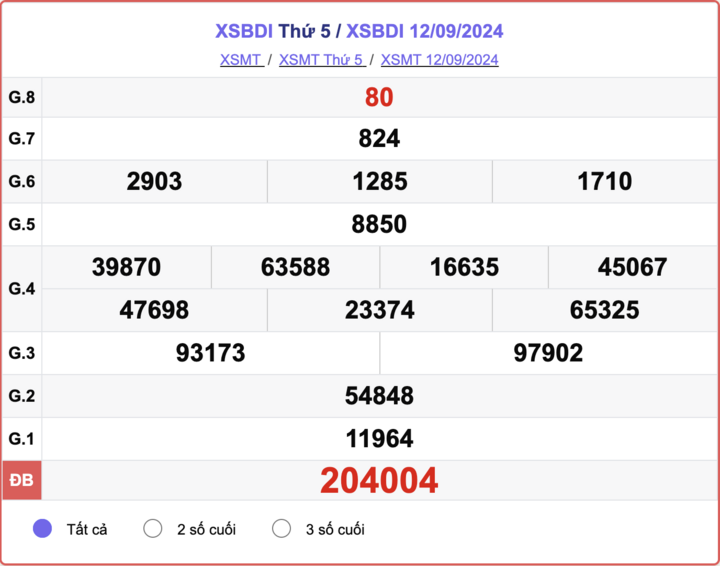 XSBDI 26/9. Kết quả xổ số Bình Định hôm nay - XSBDI thứ Năm ngày 26/9/2024 sẽ được cập nhật nhanh chóng và chính xác nhất trên phuongtruongan.vn. Kết quả các giải thưởng của XSBDI ngày 26/9/2024 sẽ được công bố lần lượt từ giải nhất cho đến giải tám, cuối cùng là giải đặc biệt.