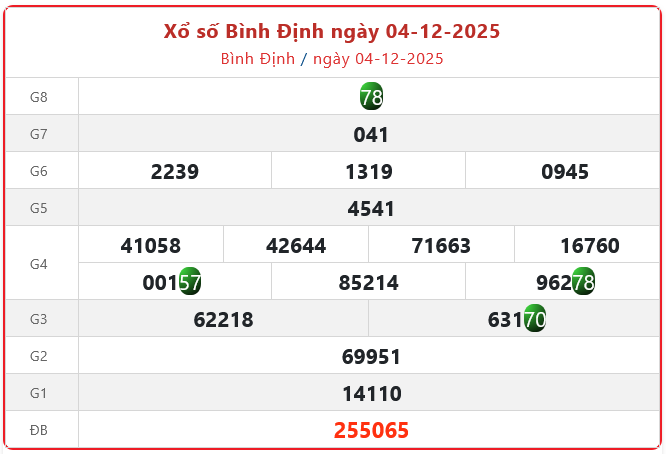 - XSBDI 4/12, Kết quả xổ số bình định ngày 4/12/2025