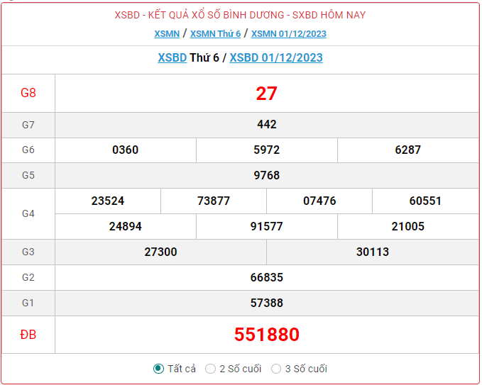 XSBD 8/12 - KQXS Bình Dương hôm nay - Trực tiếp kết quả xổ số Bình Dương thứ 6 ngày 8/12/2023