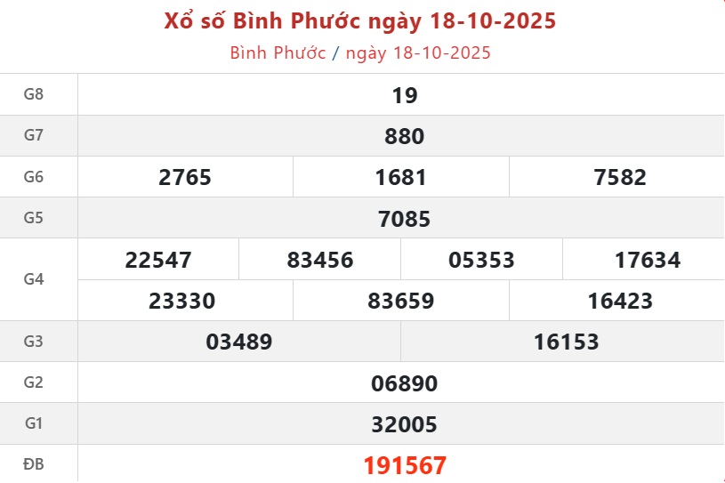 Kết quả xổ số Bình Phước hôm nay ngày 15/11/2025 sẽ được cập nhật nhanh chóng và chính xác nhất. Kết quả các giải thưởng XSBP 15/11/2025 được công bố lần lượt từ giải nhất cho đến giải tám, cuối cùng là giải đặc biệt.