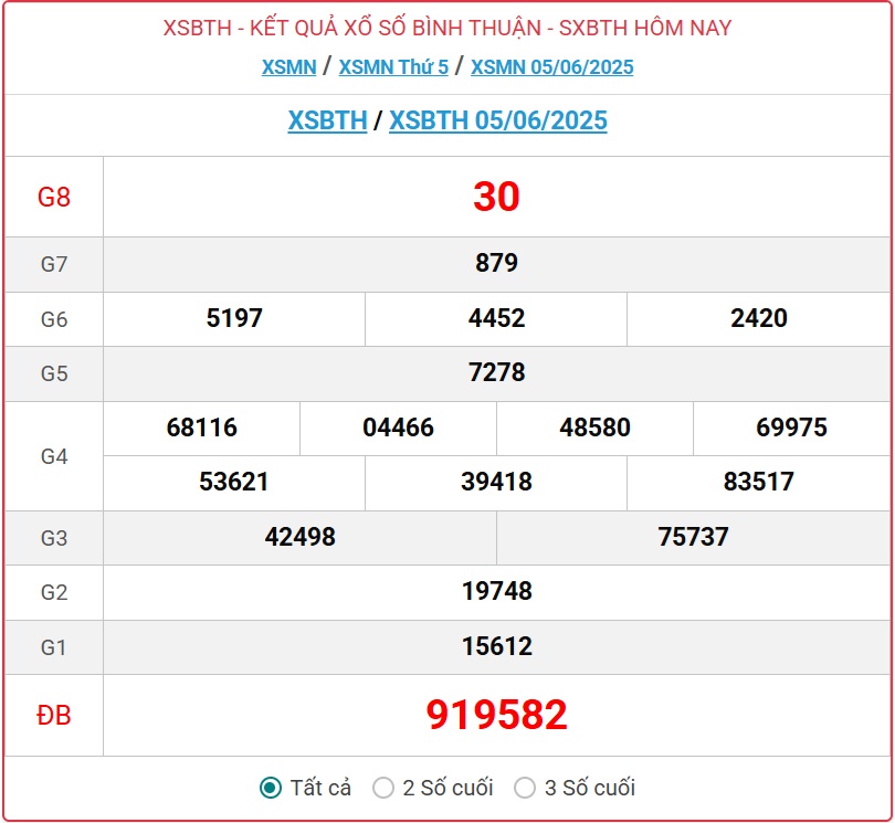XSBTH 5/6, kết quả xổ số Bình Thuận hôm nay 5/6/2025.