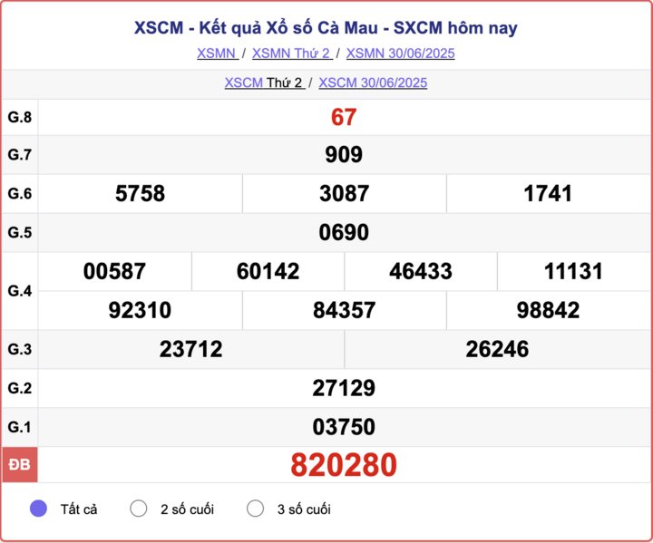 Trực tiếp Kết quả xổ số Cà Mau hôm nay - Kết quả XSCM 21/7 - XSCM hôm nay Thứ Hai ngày 21/7/2025