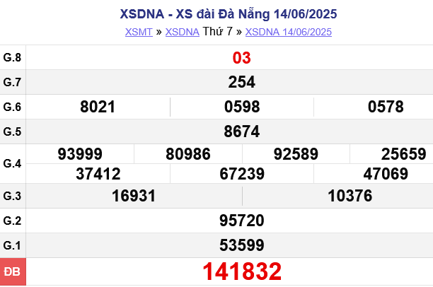 XSDNA 14/6, kết quả xổ số Đà Nẵng hôm nay ngày 14/6/2025.