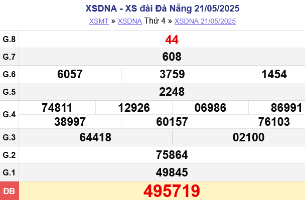 XSDNA 21/5, kết quả xổ số Đà Nẵng hôm nay ngày 21/5/2025.