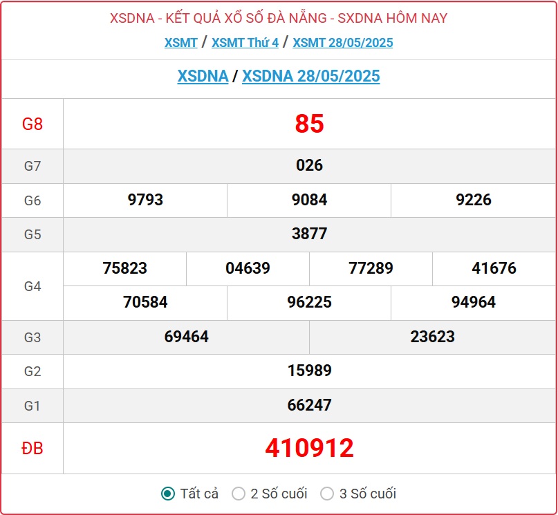 XSDNA 28/5, kết quả xổ số Đà Nẵng hôm nay ngày 28/5/2025.