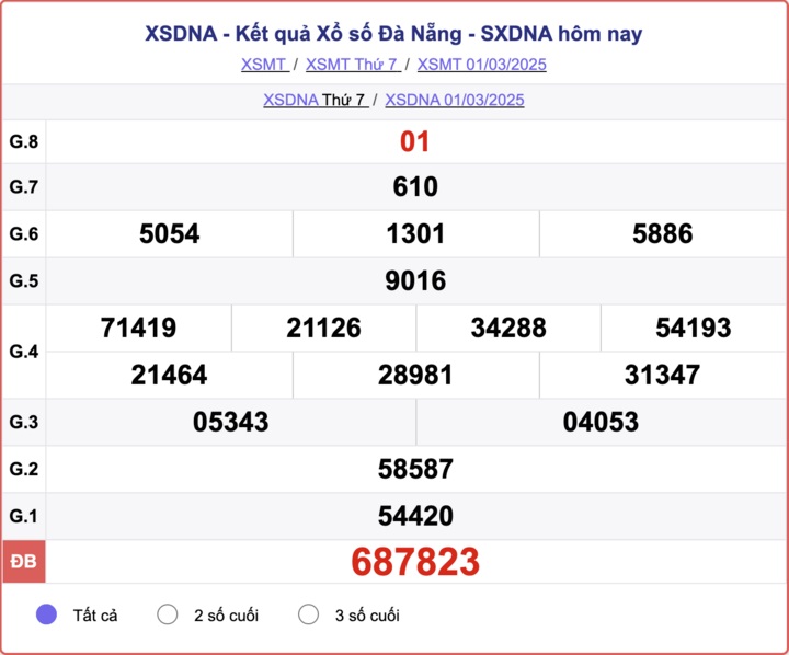 XSDNA 1/3, kết quả xổ số Đà Nẵng hôm nay 1/3/2025.