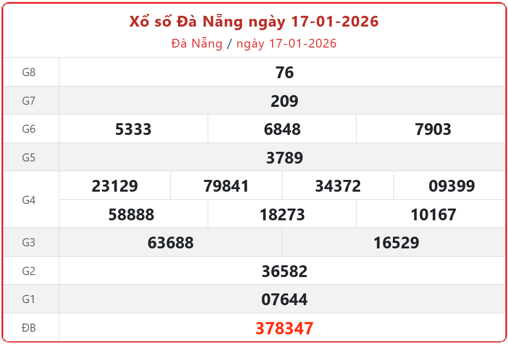 Theo dõi ngay kết quả xổ số Đà Nẵng hôm nay 17/1/2026 nhanh chóng và chính xác nhất.