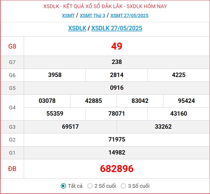 XSDLK 27/5, kết quả xổ số Đắk Lắk hôm nay 27/5/2025.