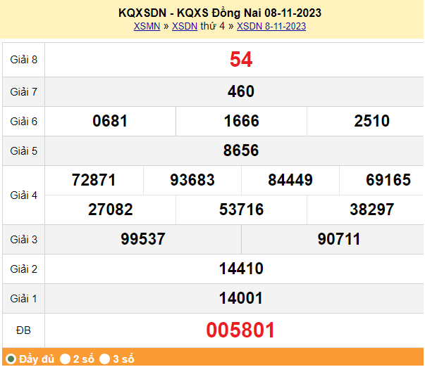 XSDN thứ 4, kết quả xổ số Đồng Nai hôm nay 8/11/2023