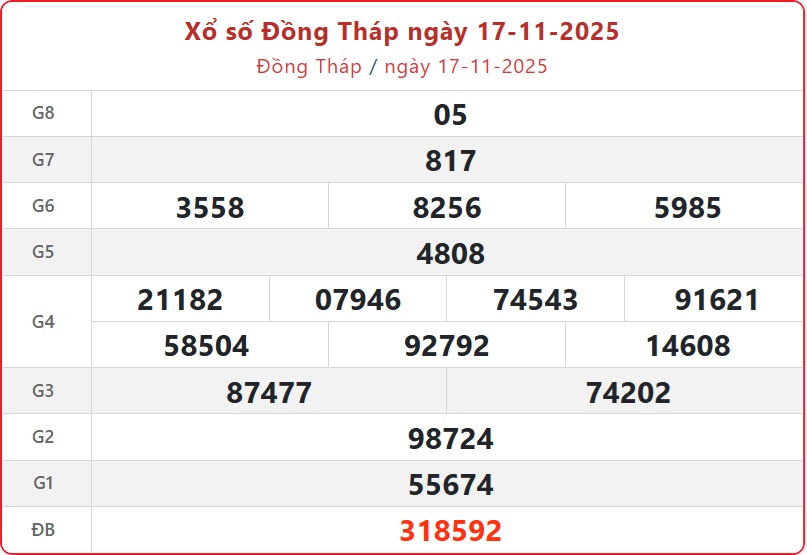 Kết quả xổ số Đồng Tháp ngày 17/11/2025