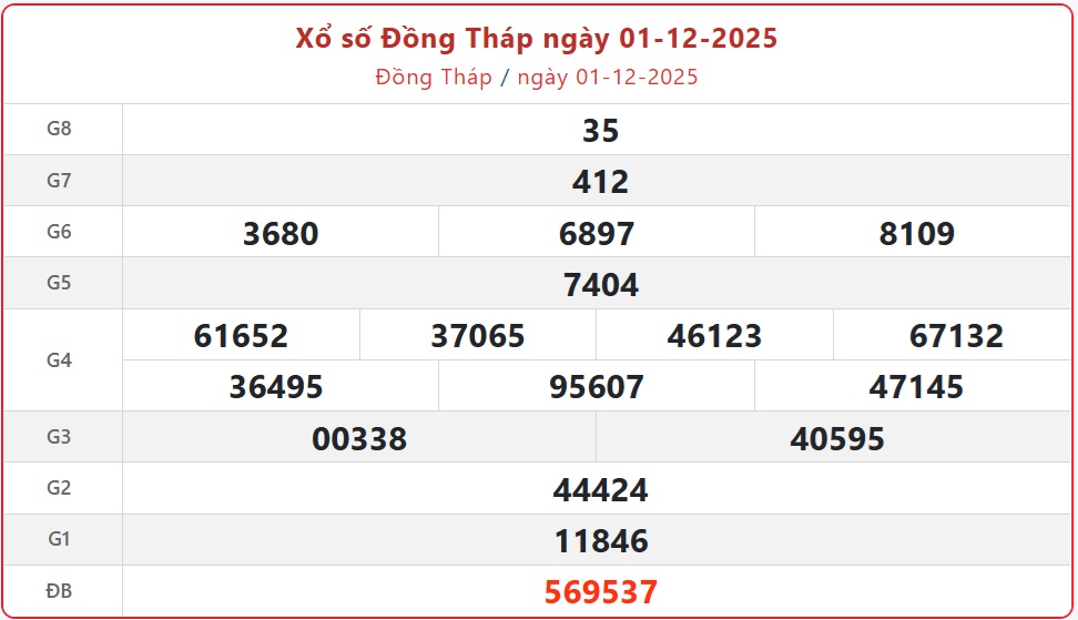 Kết quả xổ số Đồng Tháp hôm nay 8/12/2025 được quay thưởng vào lúc 16h15 bởi Công ty TNHH MTV Xổ số kiến thiết Đồng Tháp. Kết quả các giải thưởng của XSDT 8/12/2025 sẽ được công bố lần lượt từ giải nhất cho đến giải tám, cuối cùng là giải đặc biệt.