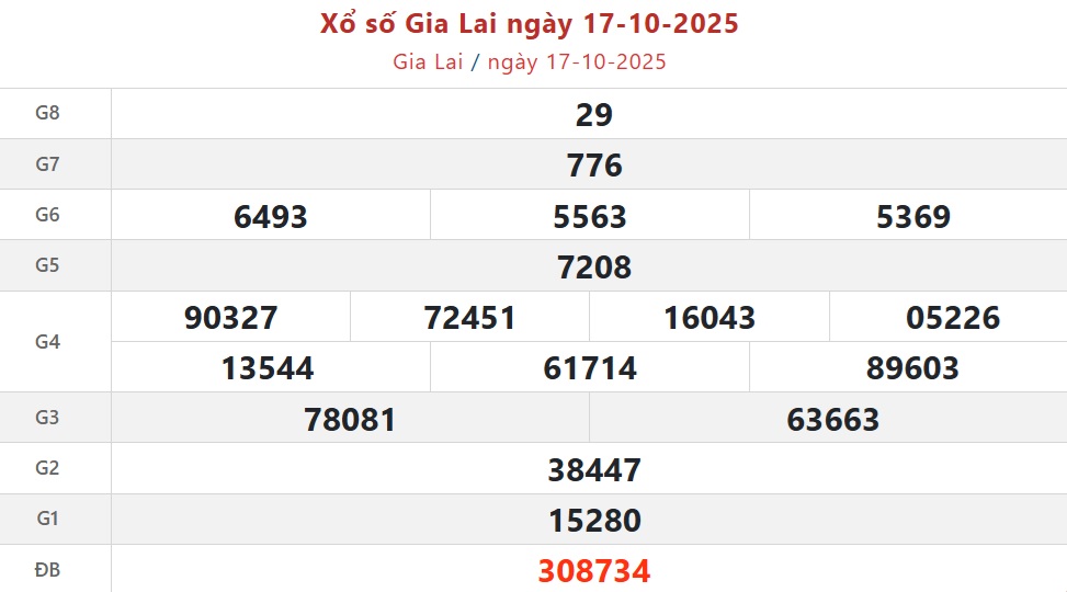 Kết quả xổ số Gia Lai hôm nay 14/11/2025 được quay thưởng vào lúc 17h15, bởi Công ty TNHH Xổ số kiến thiết Gia Lai. Kết quả XSGL 14/11/2025 sẽ công bố lần lượt từ giải tám cho đến giải nhất, cuối cùng là giải đặc biệt.