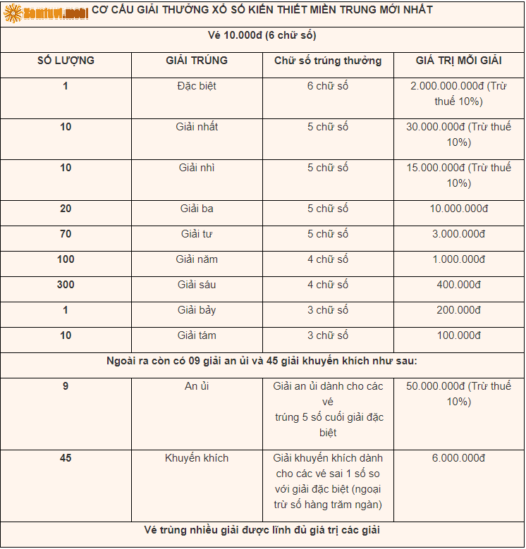 - Các vé số trúng được nhận thưởng một lần bằng tiền mặt.