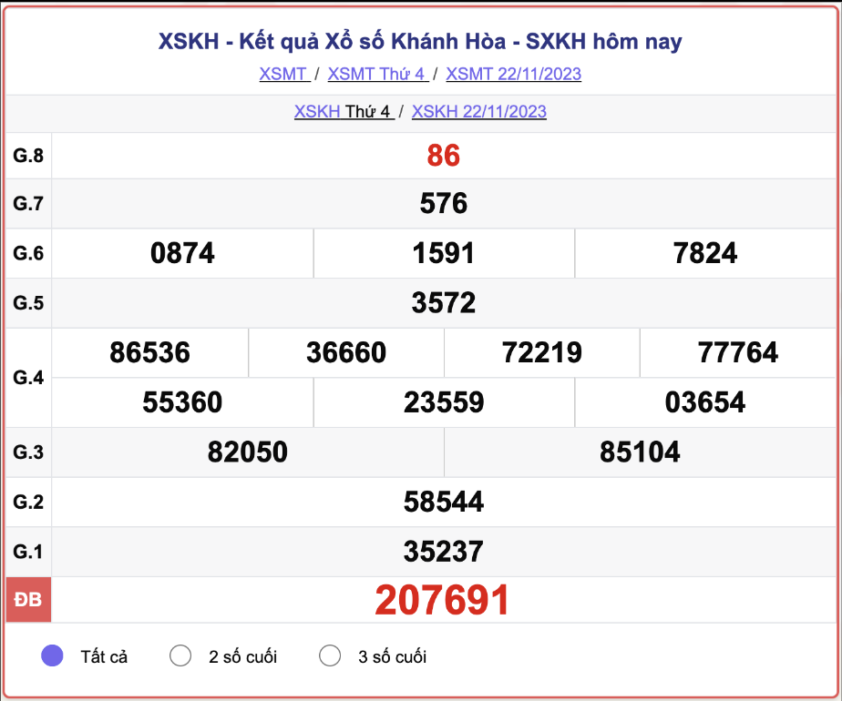 - Kết quả XSKH ngày 22/11/2023