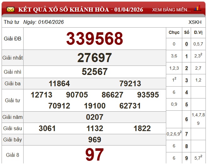 Theo dõi kết quả xổ số Khánh Hòa hôm nay 1/4/2026 để cập nhật kết quả nhanh và chính xác nhất
