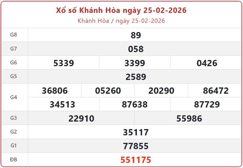 Kết quả xổ số Khánh Hòa ngày 25/2/2026