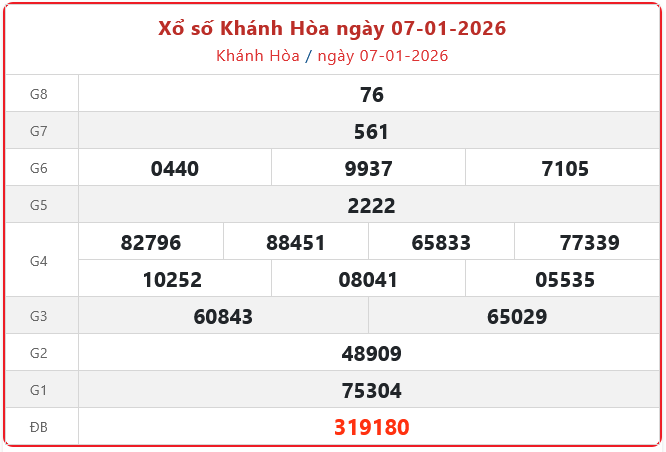 Theo dõi kết quả xổ số Khánh Hòa hôm nay 7/1/2026 để cập nhật kết quả nhanh và chính xác nhất