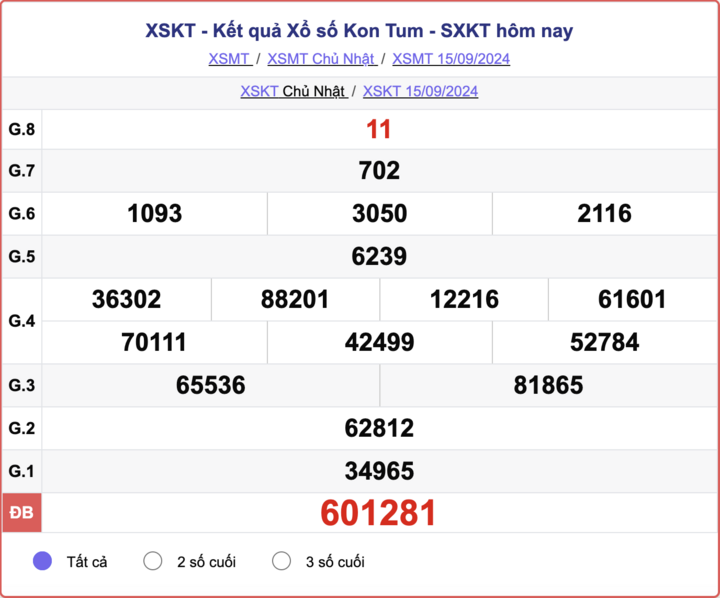 XSKT- XSKT - Xổ số Kon Tum chủ Nhật ngày 15/09/2024