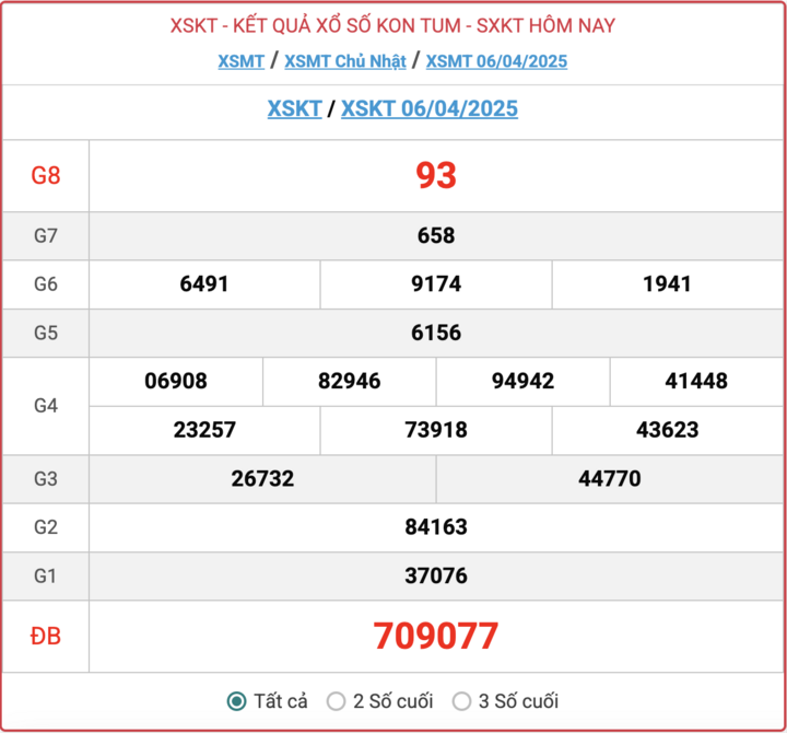 Kết quả xổ số Kon Tum hôm nay ngày 20/4/2025 - XSKT 20/4