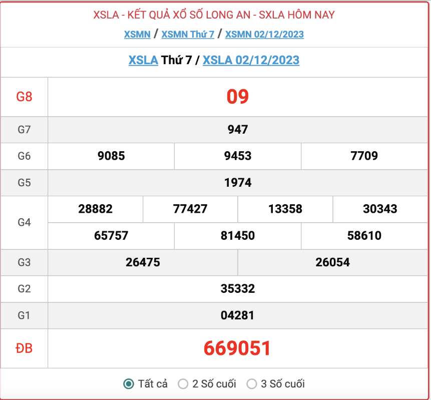 XSLA thứ 7, kết quả xổ số Long An ngày 2/12/2023